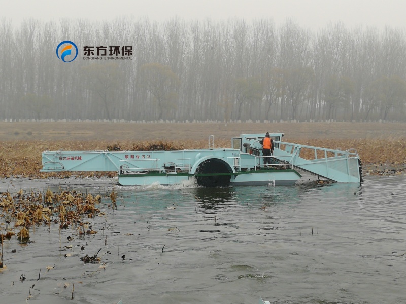 山東東平湖管理局購(gòu)買(mǎi)的DGLW110型全自動(dòng)蘆葦收割船